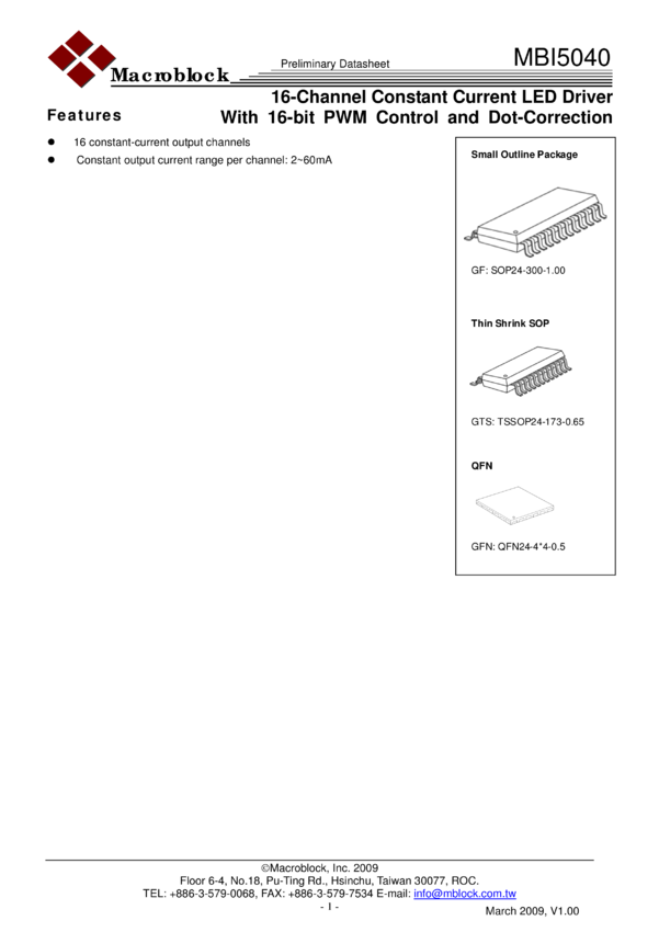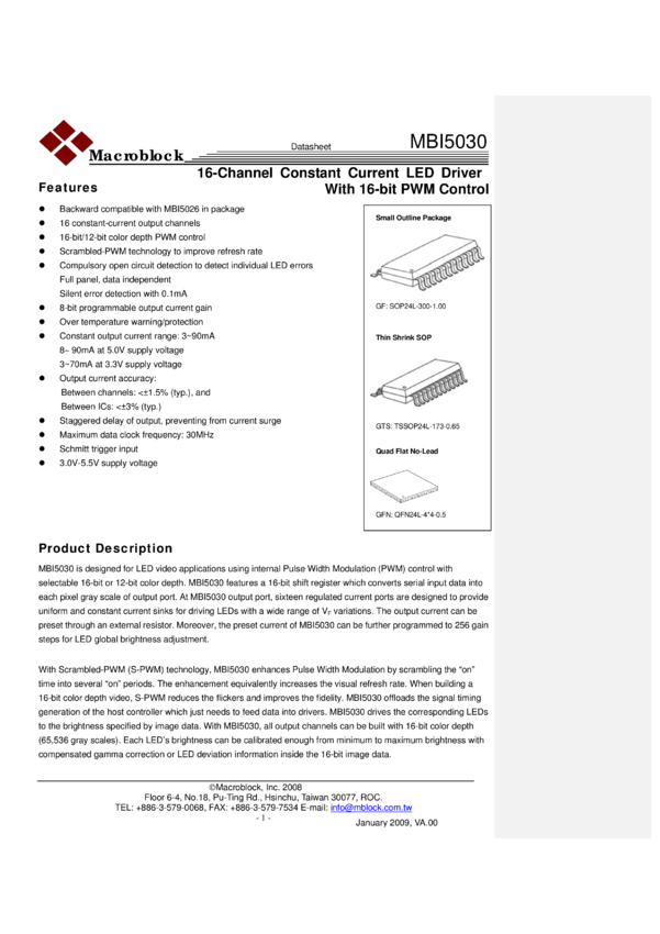 16-kanałowy PWM LED driver, 16 lub12-bitowa głębia koloru,2-60mA/5V, 2-45mA/3.3V, SOP24-300-1.00/38szt.