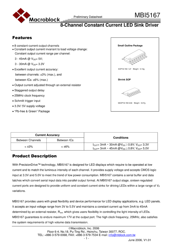 8-kanałowy LED driver, 3-45mA/5V, 3-30mA/3.3V, SOP16L/50szt