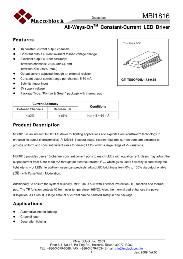16-kanałowy ON/OFF LED Driver (5-60mA), TSSOP 20L/76szt.