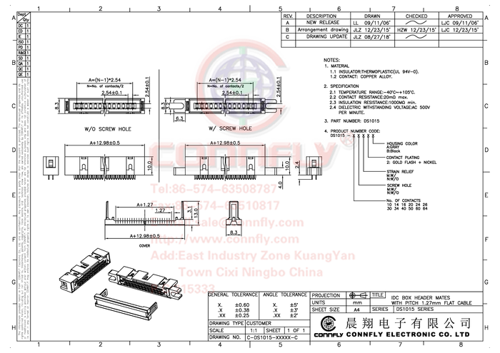 Wtyk IDC; MTW40 / AWHP-40B / IDM40; 40 torów; 2x20; męskie; proste; R=2,54mm; na taśmę; 1,27mm; złocony; złącze KANDA na taśmę IDC; DS1015-40NN2A; CONNFLY; RoHS