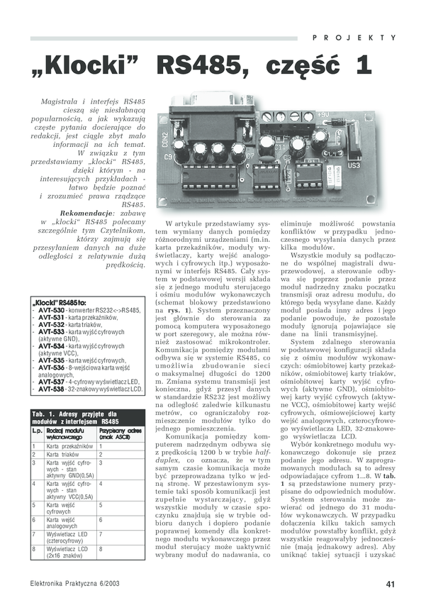 AVT532 Klocki RS485 - karta wyjść optoizolowanych