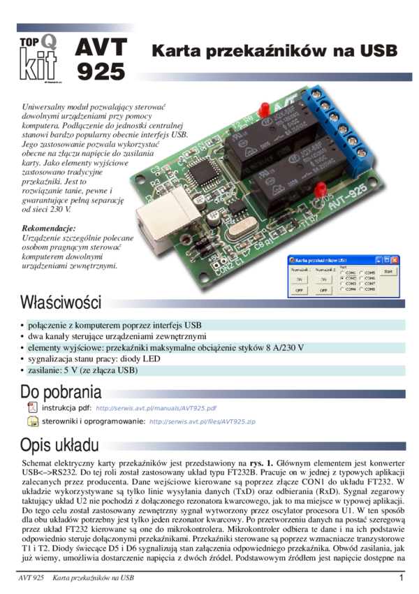 AVT5046 UK Zdalnie sterowana karta przekaźników - zaprogramowany układ