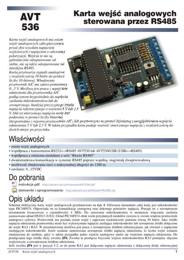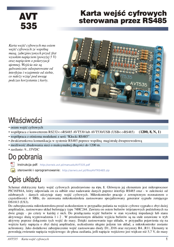 AVT535 Klocki RS485 - karta wejść cyfrowych