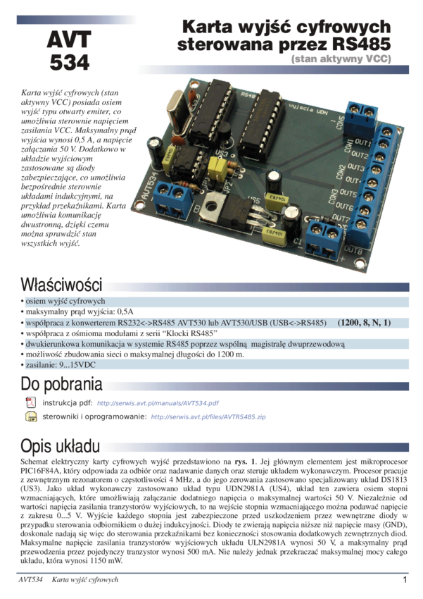 AVT534 Klocki RS485 - karta wyjść cyfrowych (VCC)