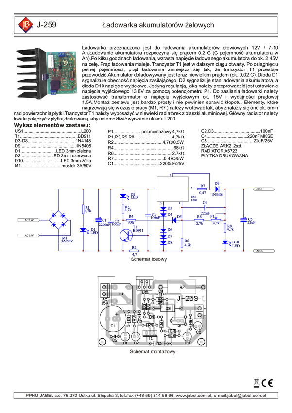 J-259 Ładowarka akumulatorów żelowych - zestaw do montażu
