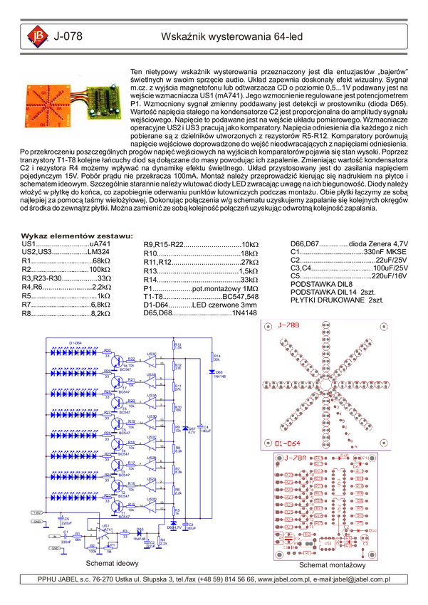J-078 Wskaźnik wysterowania 64 LED - zestaw do montażu
