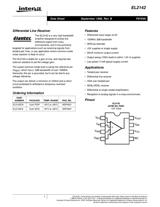 EL2142 EL2140 EL2157C tylko karty katalogowe układy nieprodukowane dla detalu nie do kupienia