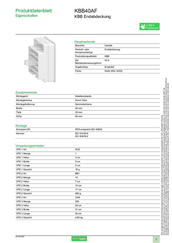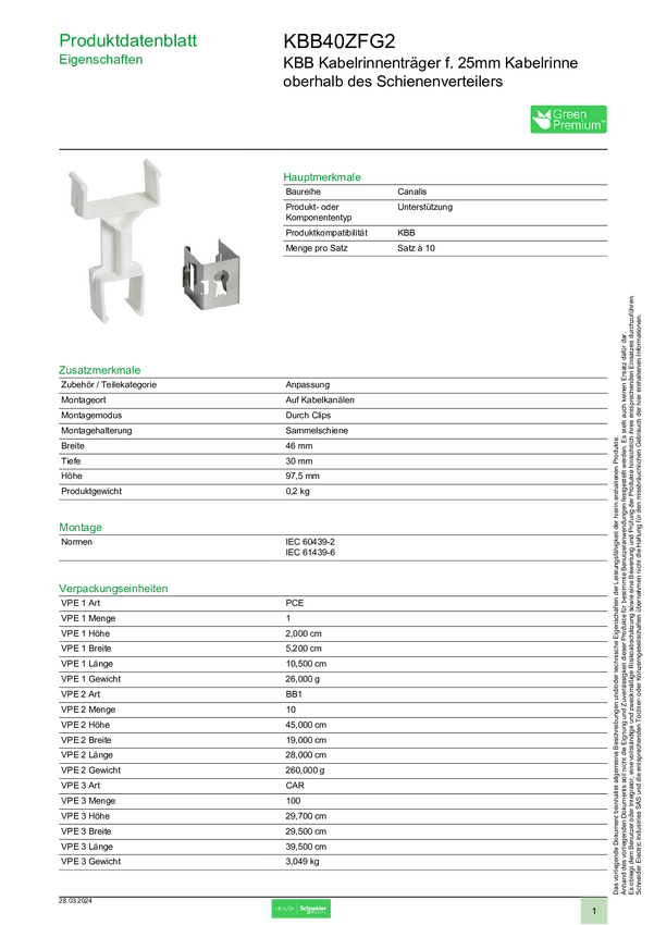Schneider Electric KBB40ZFG2 Akcesoria rozdzielacza 10 szt.