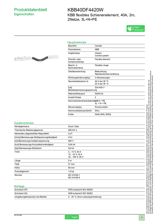 Rozdzielacz szynowy Schneider Electric KBB40DF4420W, 1 szt.