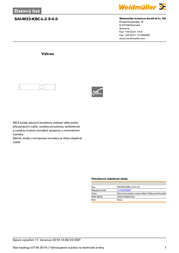 Weidmüller SAI-M23-KBC-L-2.5-4.0 1170420000 Styk zaciskany 50 szt.