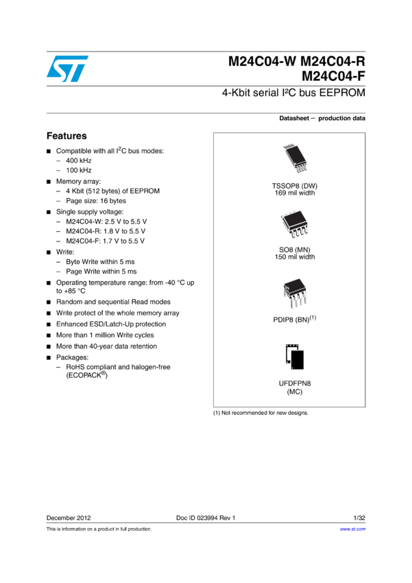 1 Kbit serial I2C bus EEPROM