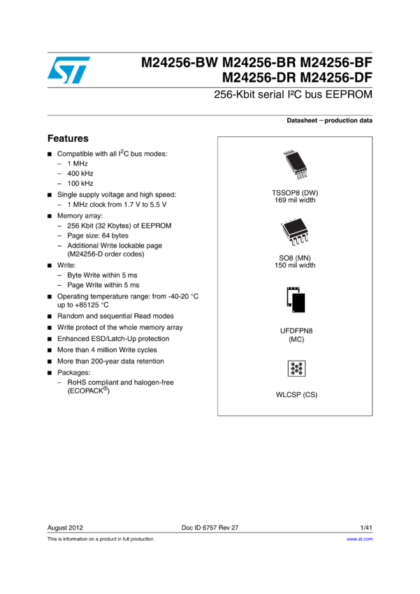 256 Kbit Serial I2C Bus EEPROM