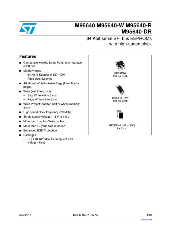 64 Kbit SPI bus EEPROM with high-speed clock