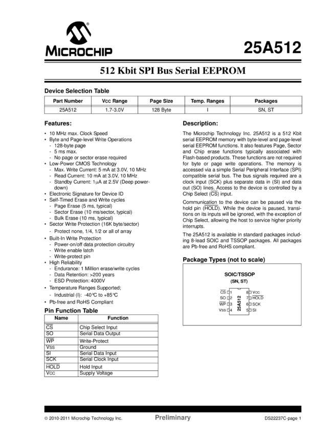 SST25VF512A Data Sheet - 512 Kbit SPI Serial Flash (10/26/2011)