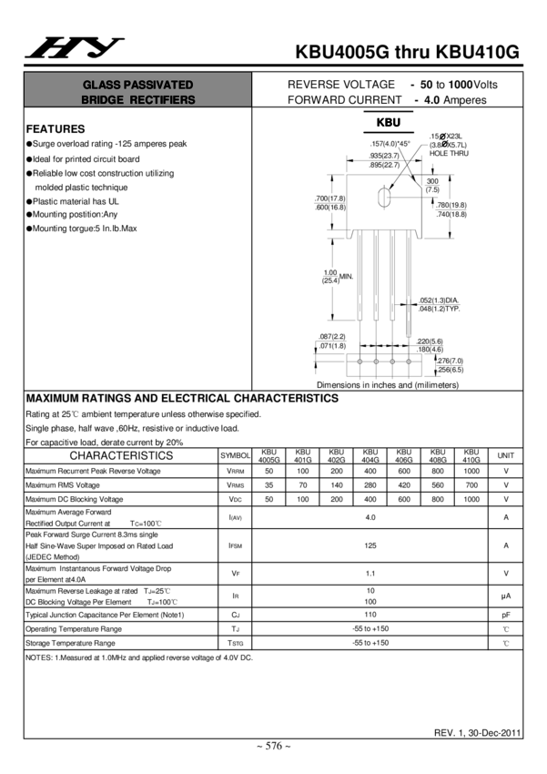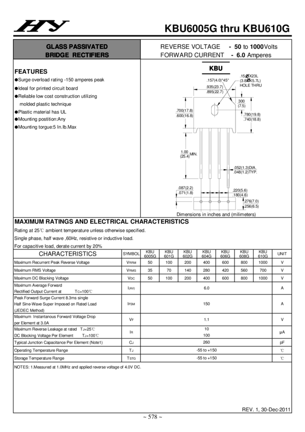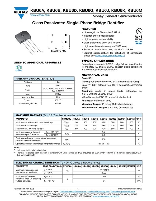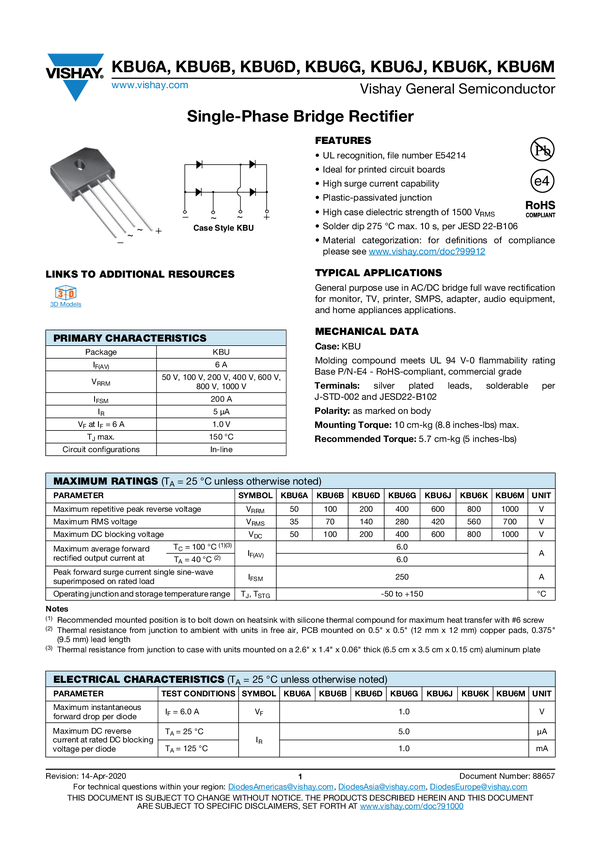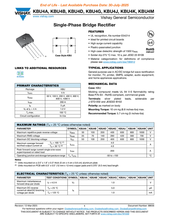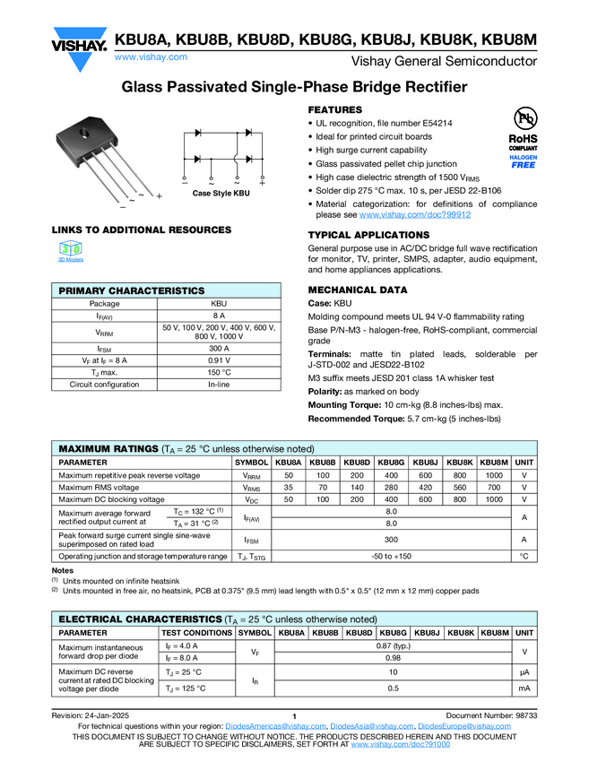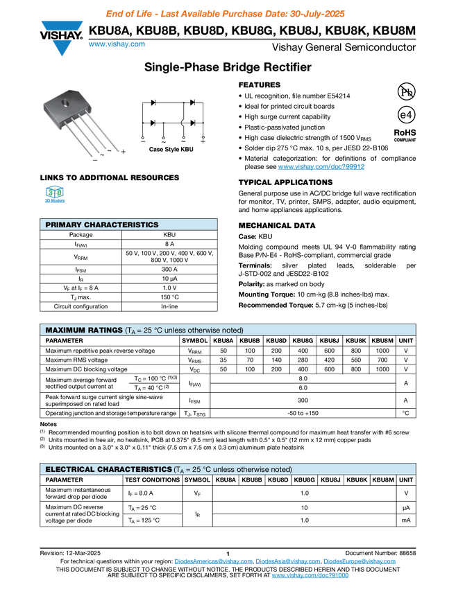 Mostek prostowniczy Graetza 8A, 1000V, KBU