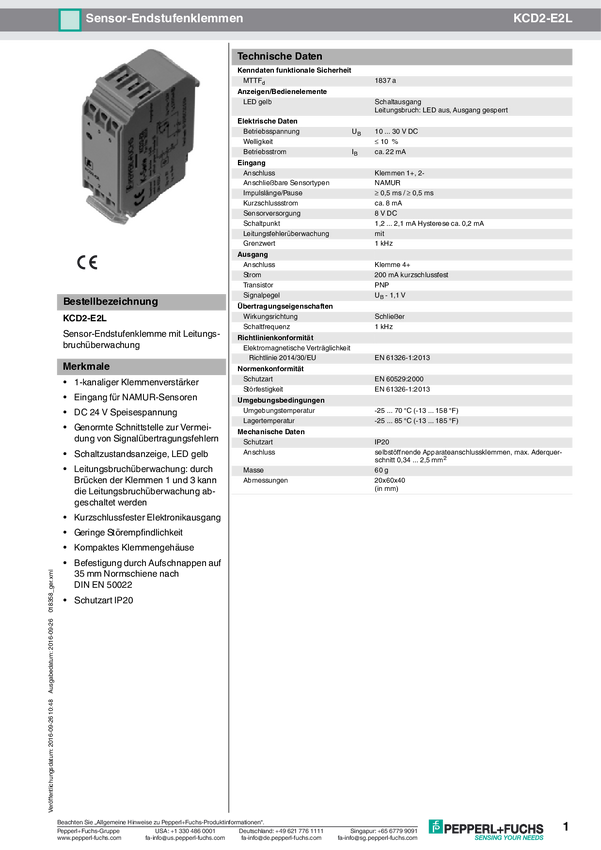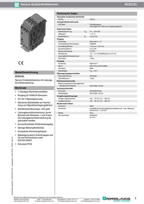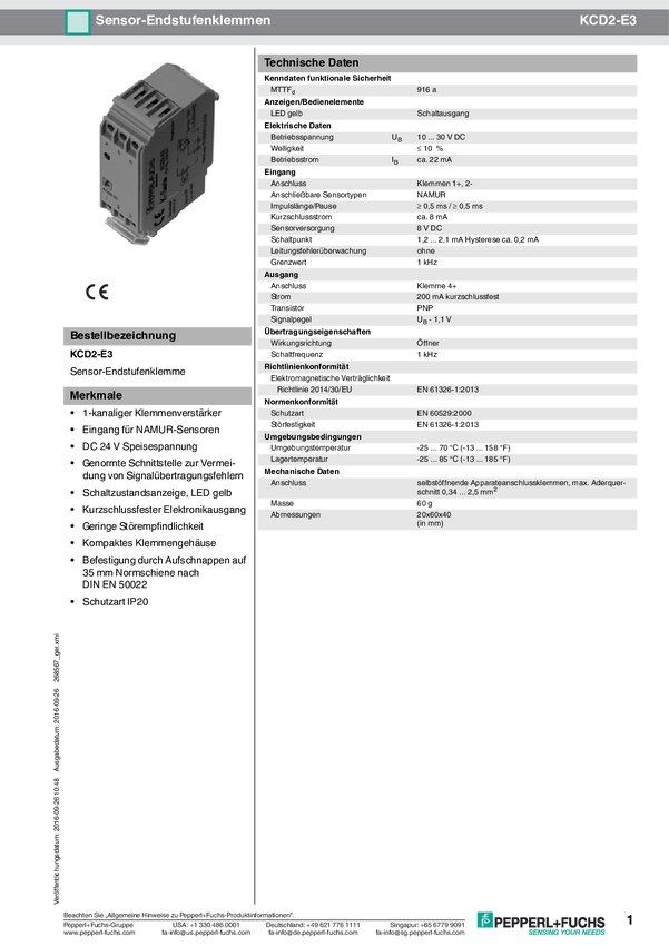 Pepperl+Fuchs KCD2-STC-Ex1.2O.ES 286746 Urządzenie zasilające nadajnika 1 szt.