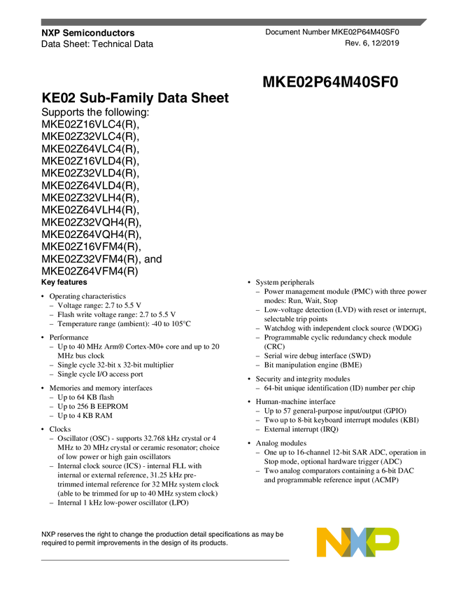 Kinetis<sup>&#174;</sup> KE02-40 MHz, Entry-Level Microcontrollers (MCUs) based on Arm<sup>&#174;</sup> Cortex<sup>&#174;</sup> -M0+ Core