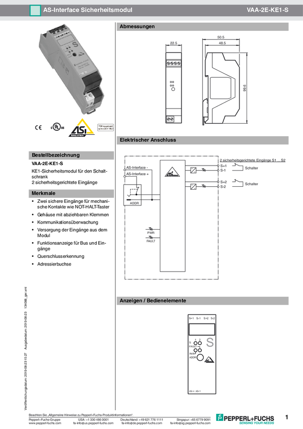 Przekaźnik bezpieczeństwa Pepperl+Fuchs 134088 VAA-2E-KE1-S 1 szt.