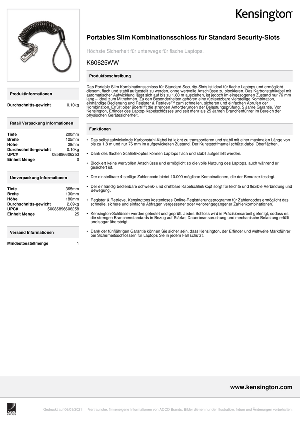 Zamek szyfrowy Kensington Portable Slim do standardowych gniazd bezpieczeństwa