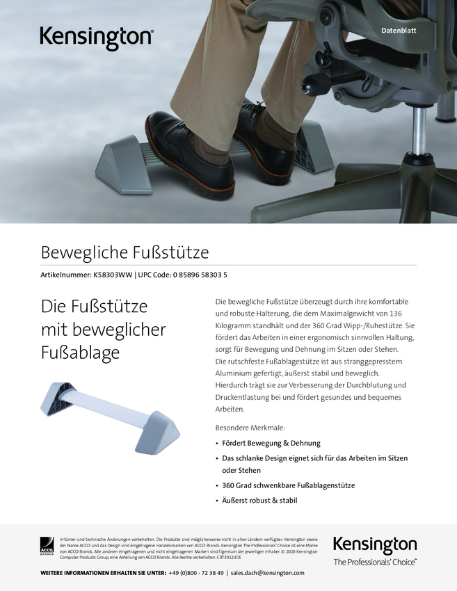 Kensington K58303WW Rocking Podnóżek (S x W x G) 559.3 x 118.5 x 218.1 mm z funkcją pochylenia szary