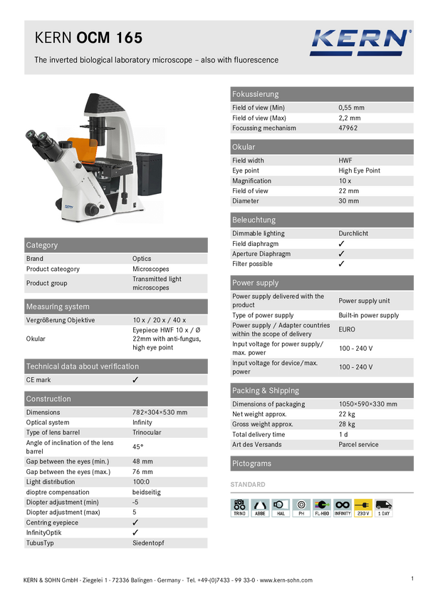 Kern OCM 165 OCM 165 Mikroskop światła przechodzącego trzyokularowy 100 x światło przechodzące