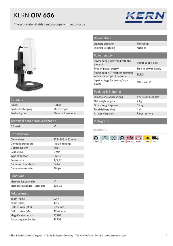 Kern OIV 656 OIV 656 Mikroskop stereoskopowy 5 x światło odbite