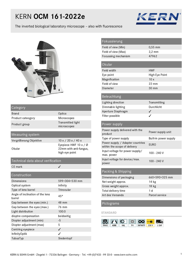 Kern OCM 161 OCM 161 Mikroskop światła przechodzącego trzyokularowy 100 x światło przechodzące