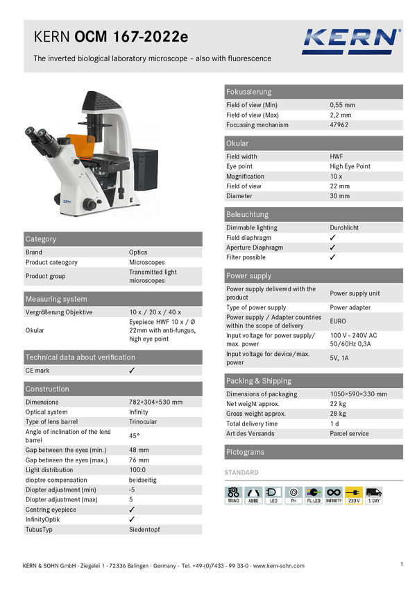 Kern OCM 167 OCM 167 Mikroskop światła przechodzącego trzyokularowy 20 x światło przechodzące