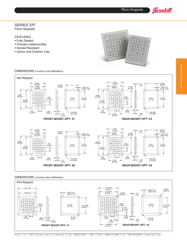 Keypad 12 Key Terminal Pins 10mA 24VDC 3.43N