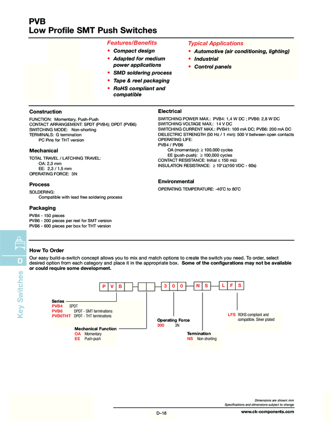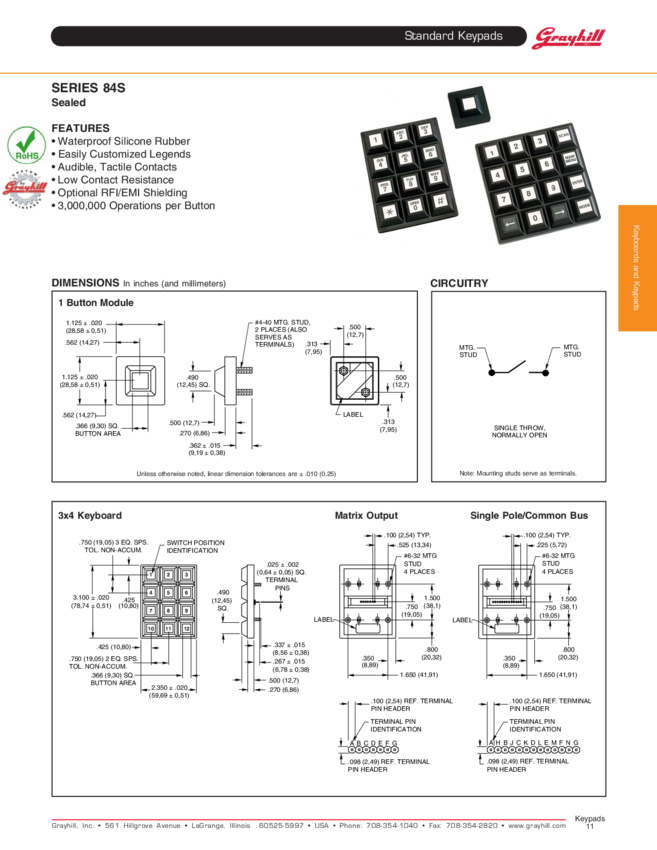 Keypad 1 Key Terminal Pins 100mA 14VDC 3N