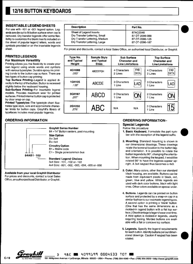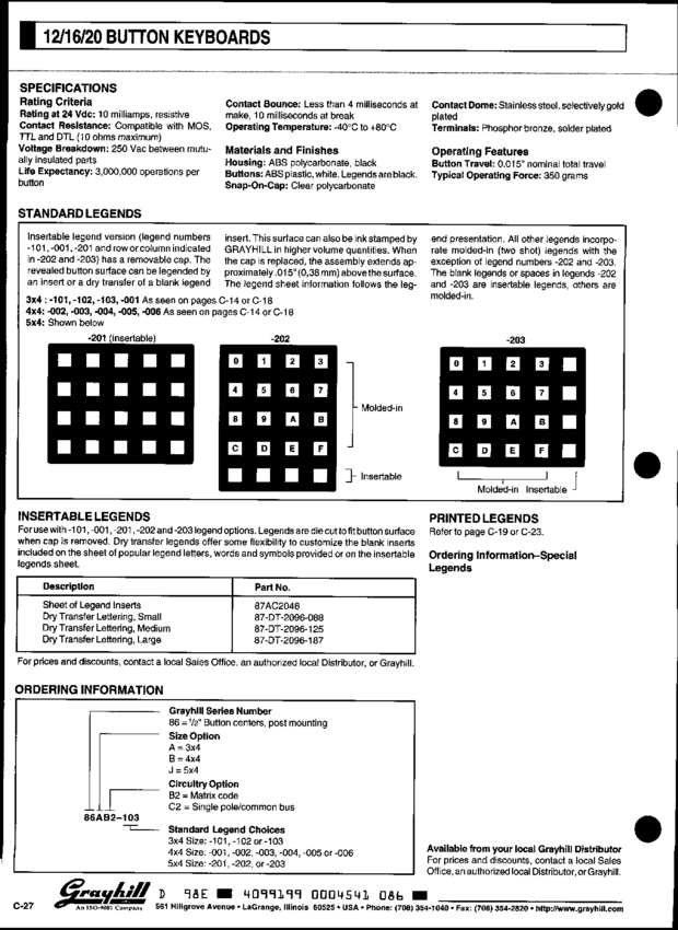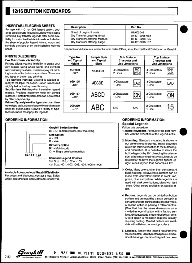 Keypad 16 Key Cable 200mA 24VAC 24VDC 5N