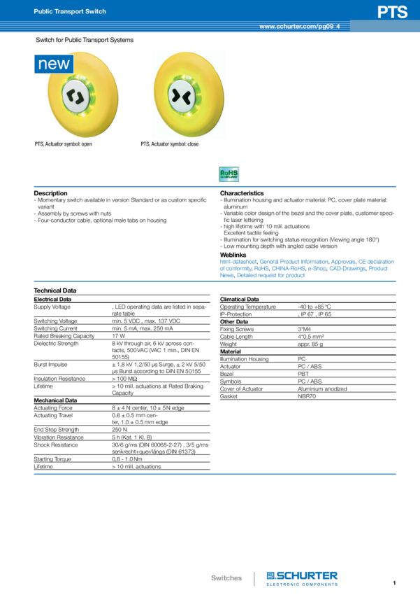 Keypad 1 Button Terminal Pins 10mA 24VDC 2.94N