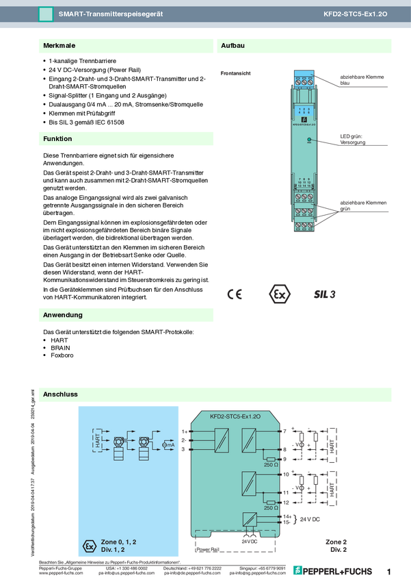 Pepperl+Fuchs KFD2-STC4-Ex1.H 283692 Urządzenie zasilające nadajnika 1 szt.