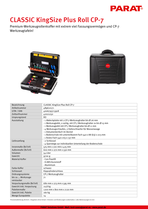 Walizka narzędziowa bez wyposażenia Parat CLASSIC KingSize Plus Roll CP-7 489.610.171