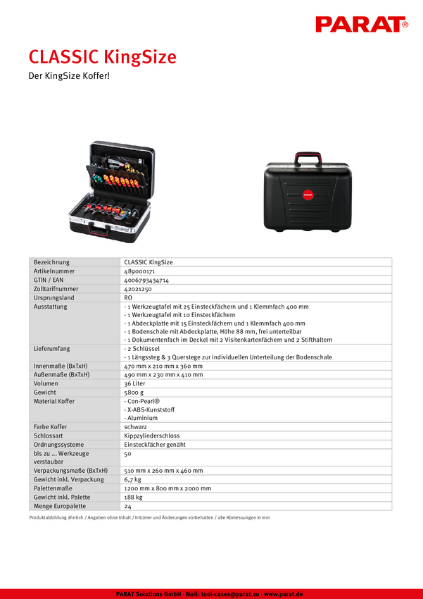 Walizka narzędziowa bez wyposażenia Parat CLASSIC KingSize 489000171