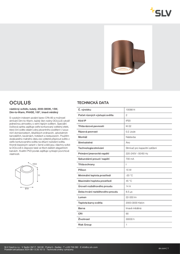 Kinkiet SLV OCULUS 1008614 15 W miedziany 550.00 lm