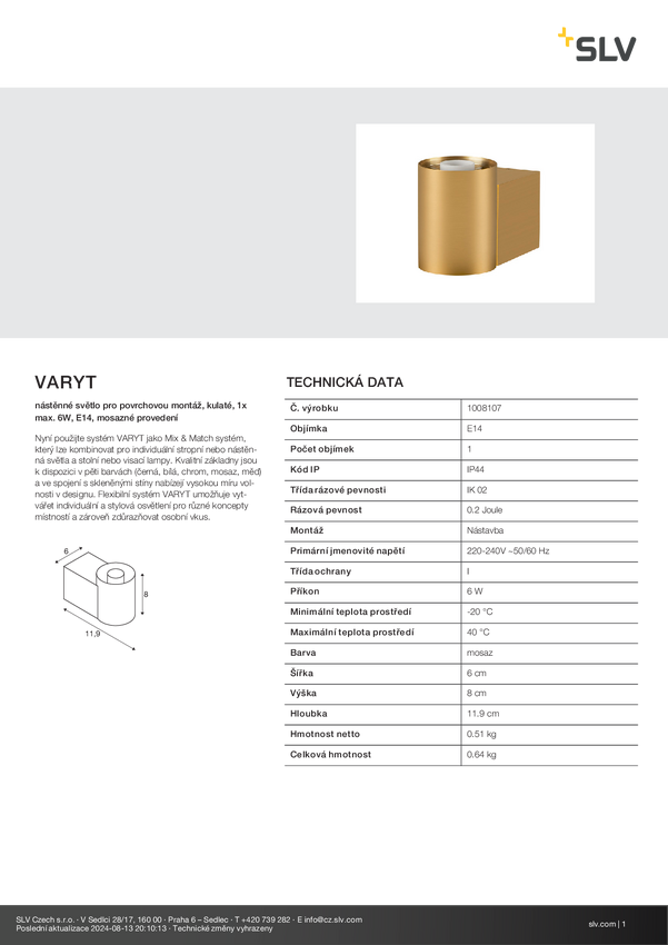 Kinkiet SLV VARYT 1008107 6 W mosiądz