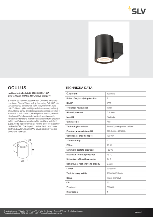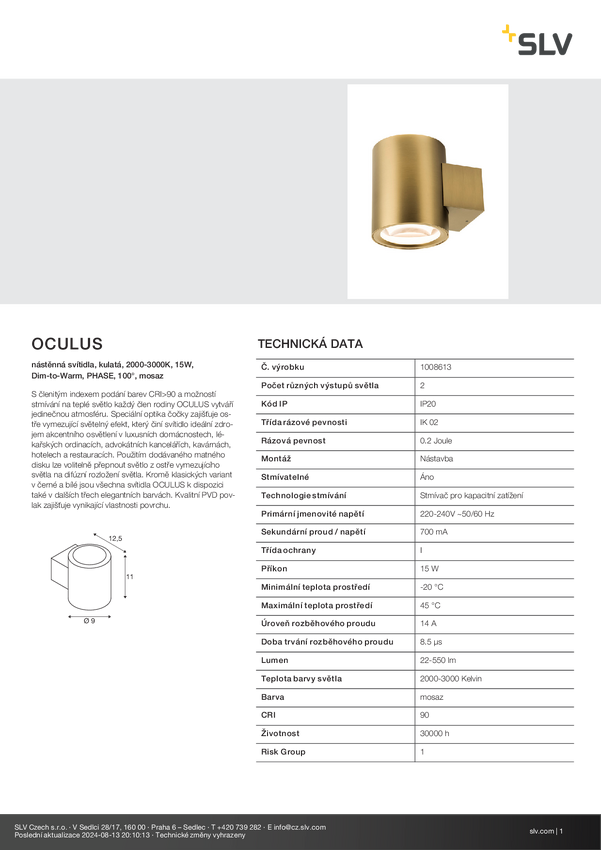 Kinkiet SLV OCULUS 1008613 15 W mosiądz 550.00 lm