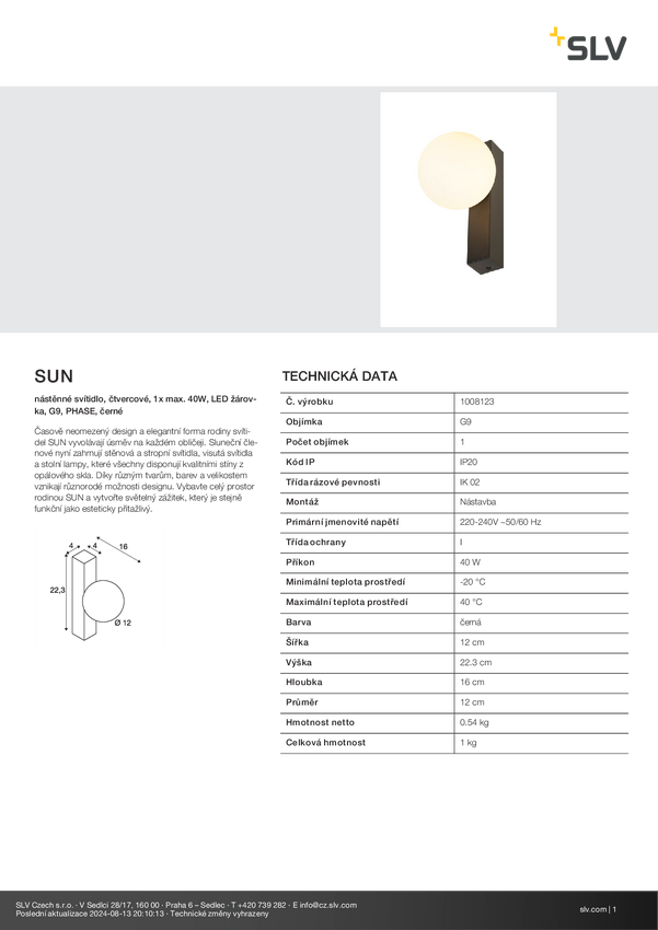 Kinkiet SLV SUN 1008123 40 W czarny