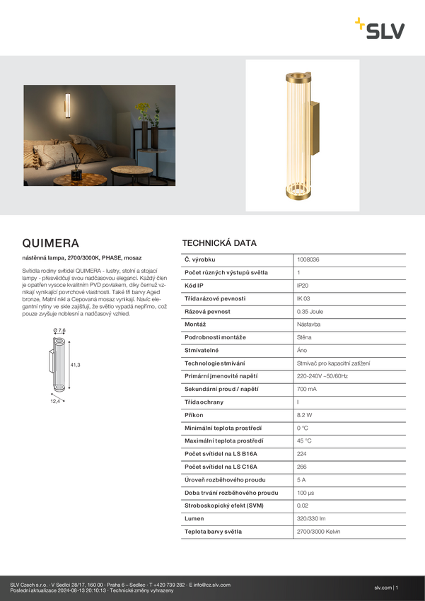 Kinkiet SLV QUIMERA 1008036 8.20 W mosiądz 330.00 lm
