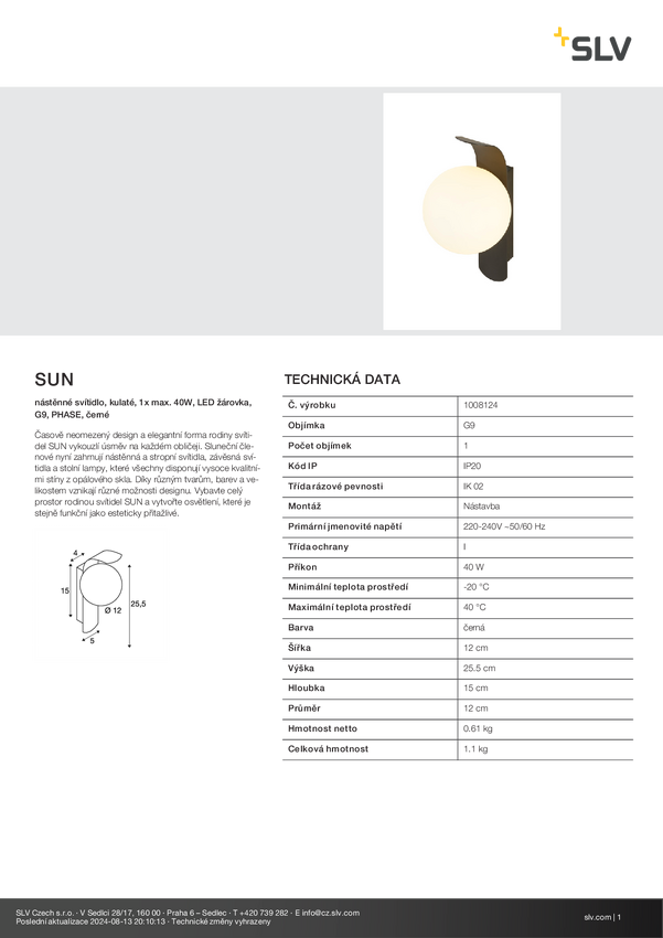 Kinkiet SLV SUN 1008124 40 W czarny