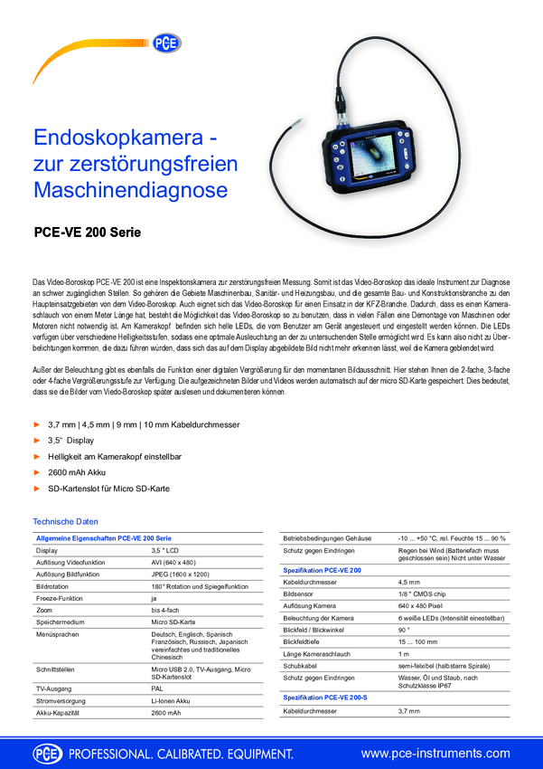 Kamera inspekcyjna PCE Instruments PCE-VE 200-KIT2, zaw. miernik cęgowy