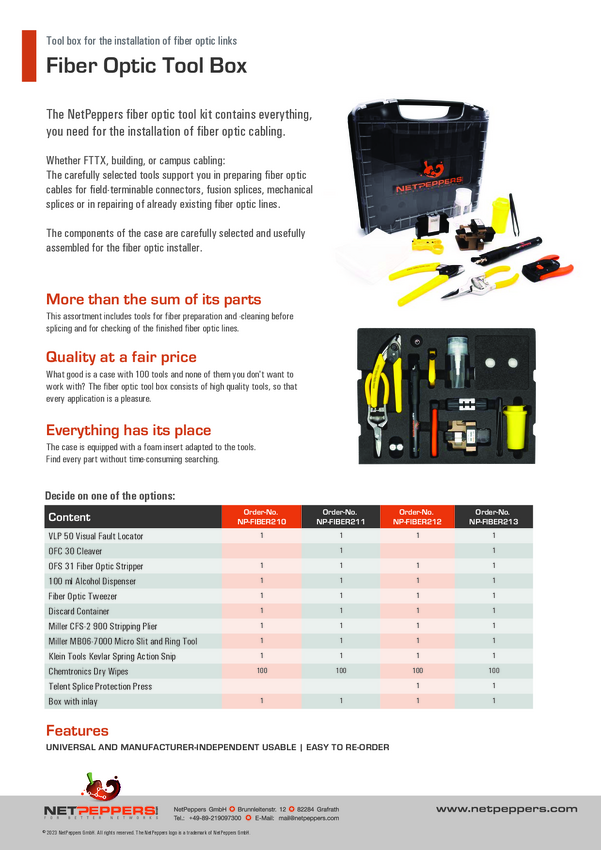 LWL Zestaw narzędzi światłowodowych NetPeppers NP-FIBER-KIT211, 1 szt.