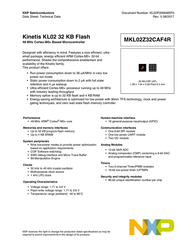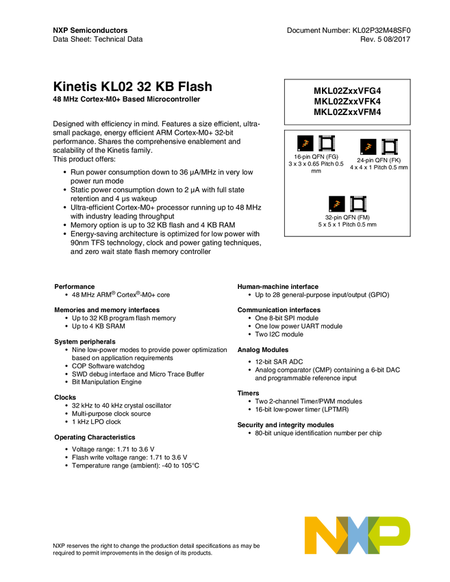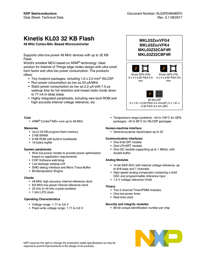 Kinetis<sup>&#174;</sup> KL0x-48 MHz, Entry-Level Ultra-Low Power Microcontrollers (MCUs) based on Arm<sup>&#174;</sup> Cortex<sup>&#174;</sup>-M0+ Core