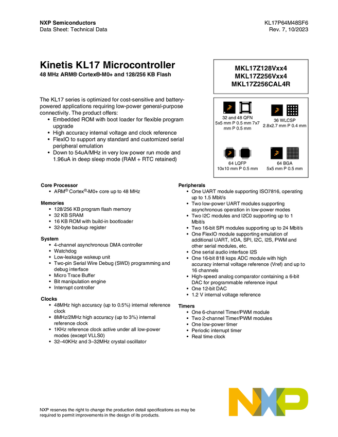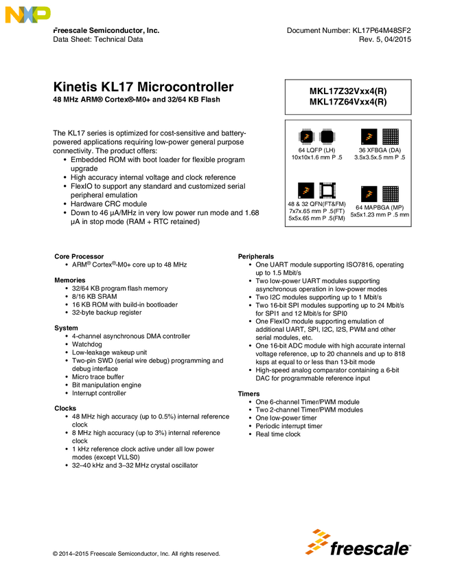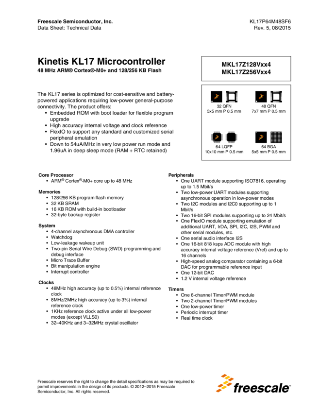 Kinetis KL17: 48Mhz Cortex-M0+ 128-256KB Flash 32-64pin