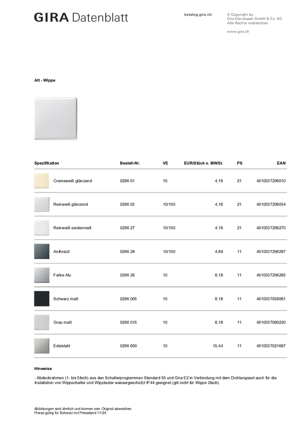 GIRA Zaślepka Przełącznik schodowy, Wyłącznik, Przełącznik krzyżowy System 55, Standard 55, E2, Event, Event Klar, Event
