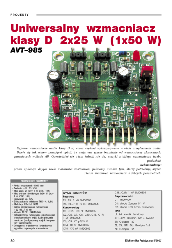 AVT5416 DAMP - wzmacniacz klasy D o mocy 10W