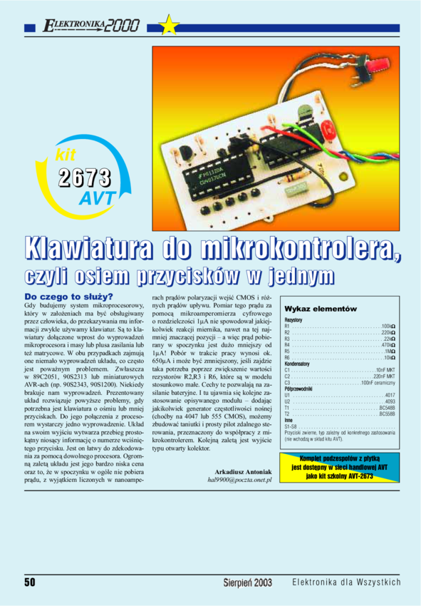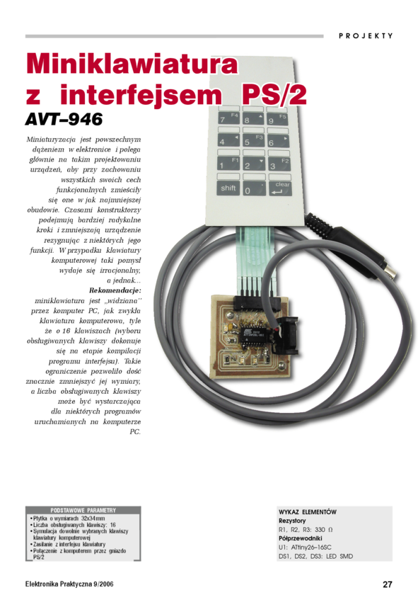 AVT867 A+ Strażnik klawiatury - płytka drukowana i zaprogramowany układ