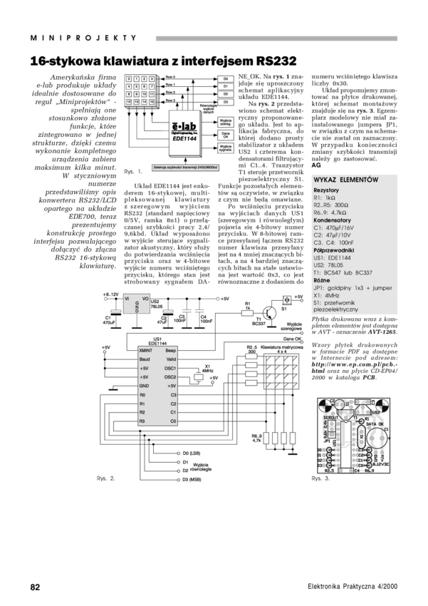 AVT1265 A Klawiatura 16-stykowa z RS232 - płytka drukowana