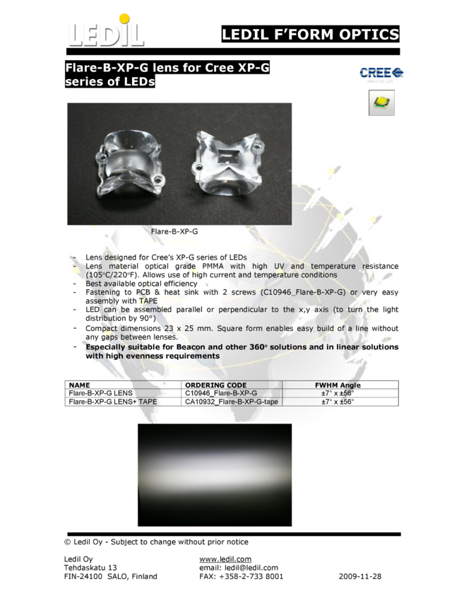 Soczewka Flare-B, ±6&deg x ±48&deg, z taśmą klejącą, do diod LED High Power seria XLamp, XP-G, XP-E, XP-C, Ledil